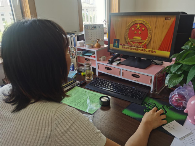 收看過程中,大家一邊聆聽,一邊記錄,認(rèn)真領(lǐng)悟會(huì)議精神。