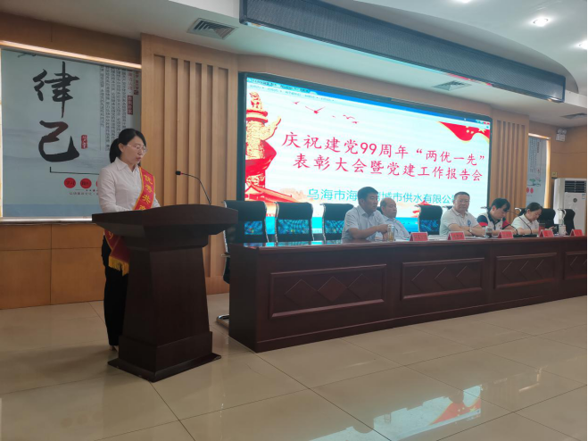 為深入貫徹落實中央和集團(tuán)公司黨組對全面從嚴(yán)治黨、加強(qiáng)國企黨建系列新要求新部署,堅持以黨的政治建設(shè)為統(tǒng)領(lǐng),鞏固“不忘初心、牢記使命”主題教育成果,全面加強(qiáng)公司黨建工作,進(jìn)一步推進(jìn)優(yōu)勢轉(zhuǎn)化,凝聚正勁干勁,推動公司全面可持續(xù)發(fā)展。7月1日,烏海市海勃灣城市供水有限公司召開慶祝建黨99周年“兩優(yōu)一先”表彰大會暨黨建工作報告會。