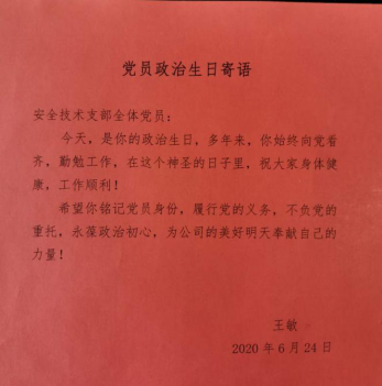 通過“過政治生日,憶入黨初心”活動,讓黨員常思“當(dāng)初入黨為什么、如今在黨做什么、今后為黨留什么”,引導(dǎo)黨員自覺加強(qiáng)黨性鍛煉,優(yōu)化工作作風(fēng),發(fā)揮模范作用,切實(shí)增強(qiáng)黨支部的向心力、凝聚力、戰(zhàn)斗力。