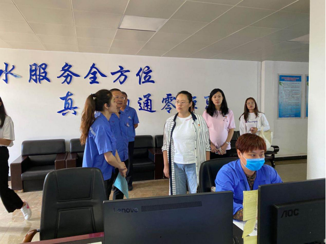 供水公司團總支迎接烏海市基層組織建設(shè)“百日攻堅”專項行動督導(dǎo)組調(diào)研試點工作。8月18日上午由團市委組宣部部長龔書瑤帶隊,團市委組宣部副部長王子璇、團市委及海區(qū)團委多名團干共同組成的調(diào)研隊來到供水公司“青年愛里”實地調(diào)研走訪,供水公司黨委副書記王永斌、團總支書記陳琳、團總支文體委員張煜敏、營業(yè)團支部書記趙玲、營業(yè)團支部支委余鴻一起陪同調(diào)研。