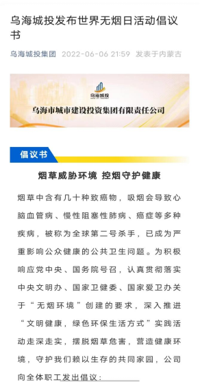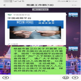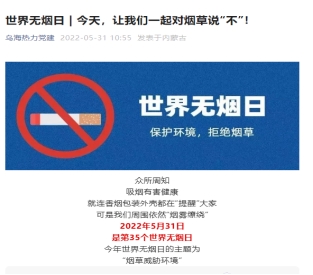 (集團(tuán)公司、市熱力公司利用微信公眾號(hào)宣傳推廣控?zé)熆破罩R(shí)、發(fā)布無(wú)煙日活動(dòng)倡議。)