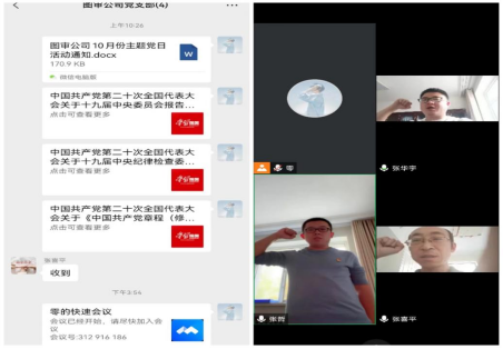 10月24日下午,集團(tuán)公司機(jī)關(guān)黨支部全體黨員、入黨積極分子共40名同志通過騰訊會議APP采取線上形式召開主題黨日活動。會議線下主會場由集團(tuán)公司閉環(huán)管理的12名黨員和積極分子組成,與線上的全體黨員首先進(jìn)行了主題黨日的前四項(xiàng)規(guī)定動作,奮戰(zhàn)在抗疫一線的同志們帶領(lǐng)大家奏唱國歌、重溫入黨誓詞、領(lǐng)誦黨章、主動繳納黨費(fèi)。之后,集團(tuán)公司黨委書記郝關(guān)峰,黨委委員、紀(jì)委書記張永東領(lǐng)學(xué)了《中國共產(chǎn)黨第二十次全國代表大會關(guān)于十九屆中央委員會報(bào)告的決議》《中國共產(chǎn)黨第二十次全國代表大會關(guān)于十九屆中央紀(jì)律檢查委員會工作報(bào)告的決議》《中國共產(chǎn)黨第二十次全國代表大會關(guān)于中國共產(chǎn)黨章程(修正案)的決議》。集團(tuán)公司機(jī)關(guān)黨支部書記喬娜通報(bào)了本次疫情防控工作相關(guān)情況。
