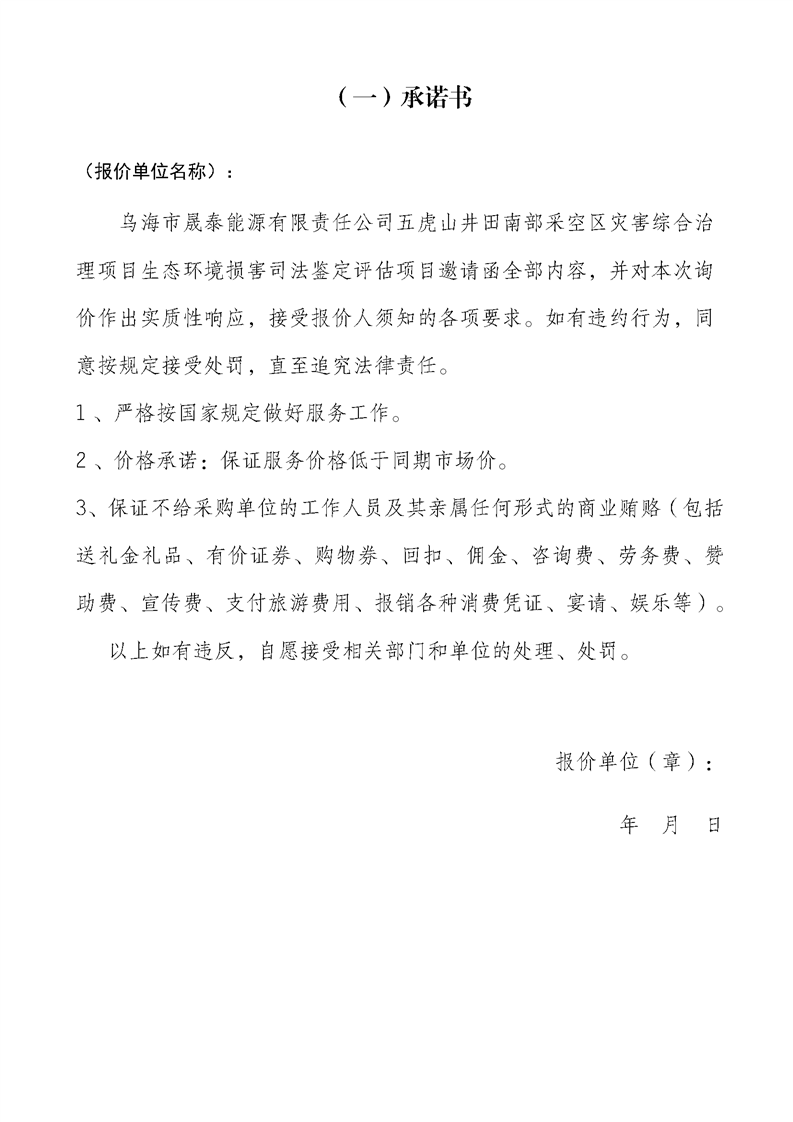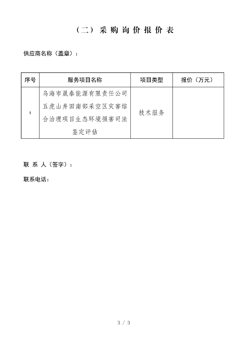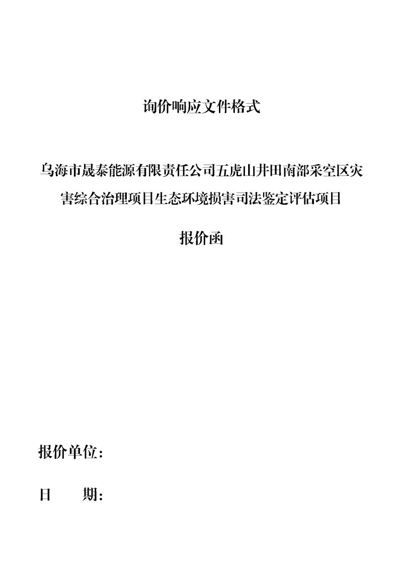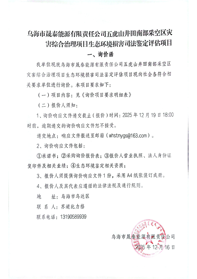烏海市晟泰能源有限責任公司五虎山井田南部采空區(qū)災(zāi)害綜合治理項目生態(tài)環(huán)境損害司法鑒定評估項目詢價公告