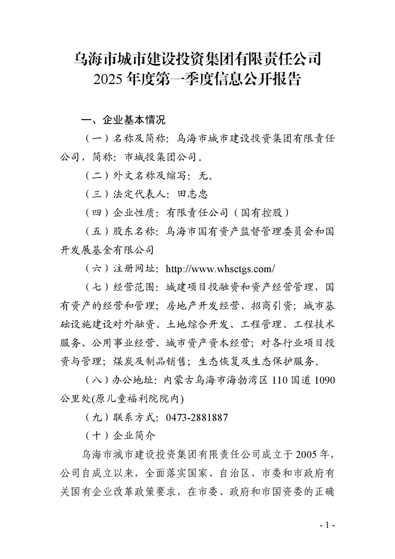 烏海市城市建設(shè)投資集團(tuán)有限責(zé)任公司 2025年度第一季度信息公開(kāi)報(bào)告