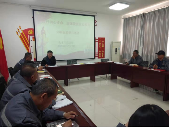 按照《關于在市國資系統(tǒng)基層黨組織中開展“踐行初心使命,加強愛國主義教育”主題黨日活動的通知》要求,為激發(fā)廣大黨員干部的愛國熱情,凝聚奮進新時代的磅礴偉力,使愛國主義成為黨員干部的堅定信念、精神力量和自覺行動,10月24日,城市供水公司開展“踐行初心使命,加強愛國主義教育”主題黨日活動。五個基層黨支部分別完成奏唱國歌、重溫入黨誓詞、誦讀黨章、繳納黨費規(guī)定動作后,黨委委員在所在支部解讀《深入學習貫徹習近平總書記考察內蒙古重要講話精神宣傳提綱》并組織黨員開展豐富多彩的主題黨日活動。