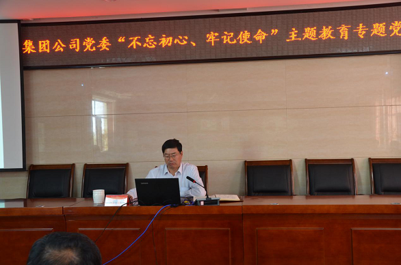 按照集團公司黨委“不忘初心、牢記使命”主題教育實施方案安排,10月30日下午,集團公司黨委書記、董事長孫增林緊緊圍繞深入學(xué)習(xí)貫徹新時代中國特色社會主義思想,錘煉忠誠干凈擔(dān)當(dāng)?shù)恼纹犯瘢浴队掠趽?dān)當(dāng)是干部的基本素質(zhì)》為題,為集團公司全體黨員干部講授“不忘初心、牢記使命”主題教育專題黨課。集團公司班子成員、各直屬黨組織班子成員、機關(guān)黨支部全體黨員、集團公司全體職工參加了會議。