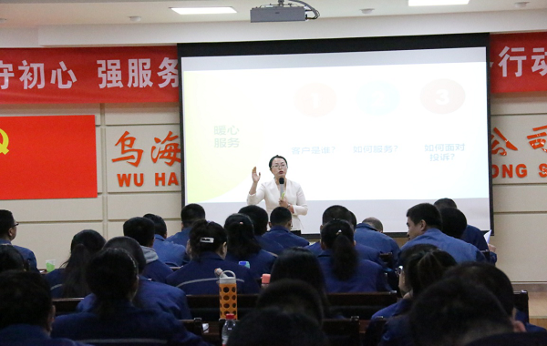 為了更好的服務(wù)用戶,進一步樹立公司良好形象,提高供熱服務(wù)質(zhì)量和員工服務(wù)意識及服務(wù)技能,建立高效的供熱服務(wù)體系,實現(xiàn)供熱服務(wù)精細化、高效化,2019年12月2日-5日,烏海市熱力有限責任公司組織開展“守初心、強服務(wù)、保供熱、送溫暖”暖冬行動服務(wù)技能提升培訓會,公司特聘請北京宏源環(huán)保技術(shù)研究院何春芳老師對公司一線維修工、收費人員、客服人員及相關(guān)職能部室員工進行規(guī)范服務(wù)質(zhì)量和提升業(yè)務(wù)素質(zhì)的專題培訓。