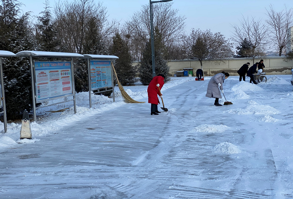 星期一一大早,迎著越過(guò)甘德爾山的曙光,市投資集團(tuán)公司全體干部職工聯(lián)合濱河區(qū)公安分局及物業(yè)公司工作人員一起投入到清掃積雪的行動(dòng)中。大家分工明確,配合緊密,掃雪、鏟雪、推車,有條不紊。不到一個(gè)小時(shí),就將院內(nèi)清掃干凈,恢復(fù)如初。